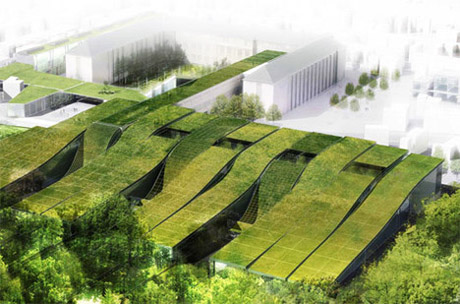 土耳其One & Ortakoy建筑群 這個名為“One & Ortakoy”的多功能建筑群位于土耳其的伊斯坦布爾。它擁有彎曲的有機形態以及被綠草和鮮花覆蓋的起伏屋頂,與所在的美麗山區融為一體。這個建筑群位于奧爾塔科伊附近地區,現正在建造之中。它由兩座建筑構成,正面使用天然石頭打造。其中一座是住宅建筑,另一座則是商用建筑。 4.法國綠屋頂中學