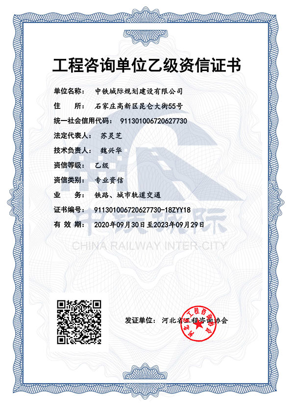 • 鐵路、城市軌道交通工程咨詢乙級