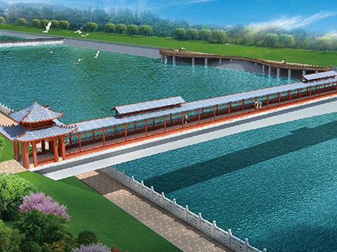 結構整體采用廊、橋結合的布置形式,體現了人在橋中、橋在畫中的魅力意境