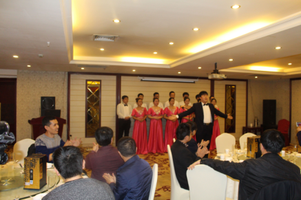 之后,就是橙子最喜歡的一項了:晚宴。晚宴時刻應該是大家最輕松的時候,觥籌交錯,大家歡歡笑笑的敬酒,聊天。也在期間結識了更多的朋友合作伙伴。甚至在晚宴后期,進行了歌唱比賽。大家都“踴躍”參加,甚至院長也高歌一曲,為大家助興。
