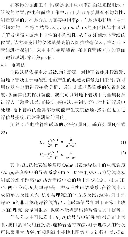 在建立了包含金屬介質的非金屬管道中,可以采用多種方法對這些地下管道的位置進行探測。
