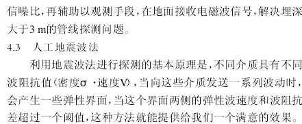在地面以上利用人工震源進行激震時,激震點處會產生彈性震動對附近的土層產生影響,并形成彈性波(即地震波)向四周擴散,在地下傳播的地震波遇到不同彈性介質的分界面時(比如非金屬管材和周圍地層之間的分界面),會出現波動的反射、折射和透射等現象,探測者可以根據地下傳播的這些波動信息,進行分析,研究波動的傳播規律,從而確定地下管道的存在位置(在地下管線的探測中,常用的技術是瑞雷波法(面波法),它主要是根據地下管道與周圍介質間不同的波動傳播速度,測量不同頻率波的傳播速度,以此計算地下管線的位置。如果探測埋設較深而且口徑較大的金屬或非金屬管道,可以采用這種方法獲得一個良好的結果。