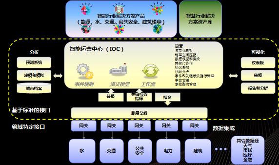 作為智慧城市理念的倡導者和先行者,IBM 在過去的三年的時間,通過研發和收購等,發布了一系列的智慧城市實現軟件產品和解決方案。2011 年 6 月,IBM 發布了智慧運營中心(IOC)產品,同年 7 月發布了智慧運營中心云產品。IBM 的智能運營中心解決方案旨在方便高效地監管和協調智慧城市運營,通過將各種信息匯集在一起,提供給相關的人員快速而準確地作出決策并且跟蹤這些決策的效果的能力。