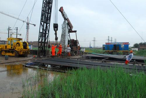 施工前,要結(jié)合施工方案和施工圖中的排水設(shè)計(jì),制訂防洪排水方案,做到永久性排水設(shè)施與臨時(shí)性排水設(shè)施相結(jié)合。在路基施工過程中,要選擇合適的位置和方式,始終保持縱橫坡度和碾壓的平整度,使雨水能迅速排走,防止邊坡坍塌堵塞水溝。對排水困難或地質(zhì)不良地段,應(yīng)盡量避開雨季施工。已開挖的路塹兩側(cè)要設(shè)置排水溝,在原地面應(yīng)做臨時(shí)或永久性截水溝,防止地面水流人路塹內(nèi)。在路槽開挖后或填方路基上進(jìn)行必要的養(yǎng)護(hù)整平,避免積水滲人路基形成翻漿。雨后開挖,首先將路塹內(nèi)局部積水排除干凈后,方可施工。下雨期間要經(jīng)常上路巡查,及時(shí)疏通水溝,減少路基積水。