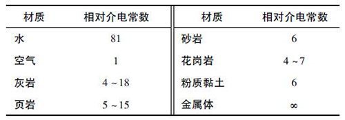 根據材料的相對介電常數,由式( 2) 可計算出電磁波在該介質中的傳播速度,從而可以根據反射波的接收時間判斷出反射體的位置。