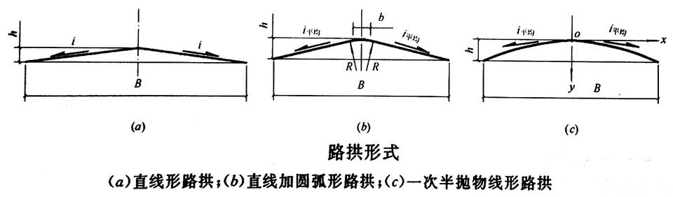 道路在橫向上單位長度內升高或降低的值,稱為路拱坡度(i),通常用%、‰或小數(shù)值表示 。