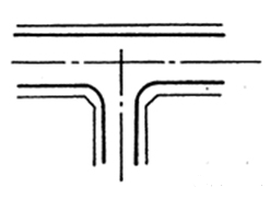 是道路盡端與別條道路相交的主要形式;一般用于次要道路與主要干道相交的交叉處,應優(yōu)先保證主要干道的交通通暢。