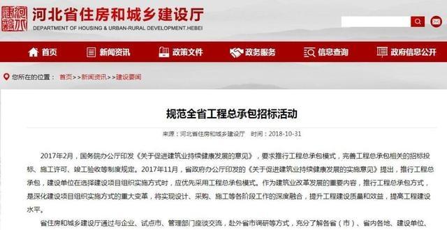11月1日河北將全面施行工程總承包招標文件示范文本