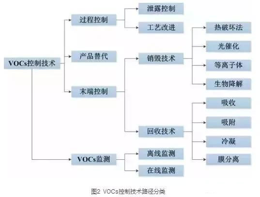 根據大氣中VOCs產生的原理和VOCs的理化性質,其控制技術可以分為兩大類,過程控制和末端控制。