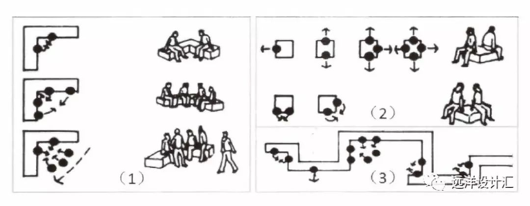 圖3.5休憩座椅擺放使用類型:2-5人小群體(1)(3);