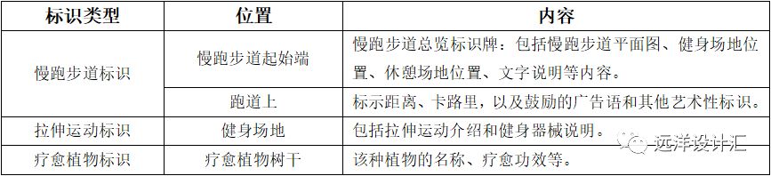 居住區(qū)慢跑步道標(biāo)識應(yīng)包括以下內(nèi)容,見表3-3: