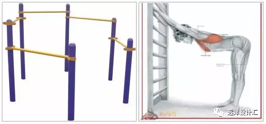 圖3.4(右) 健身器械肋木和背部拉伸運(yùn)動示意
