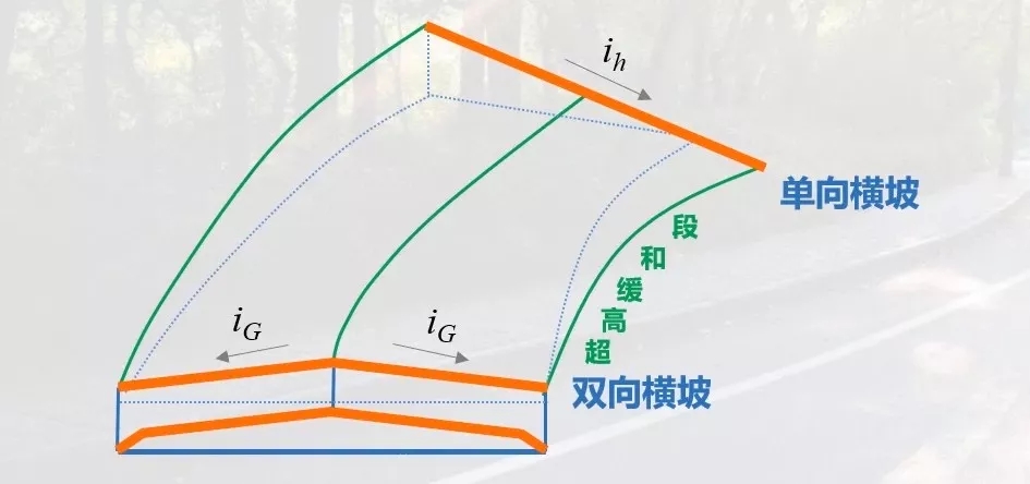 超高是指車輛在彎道上行駛,為了抵抗離心力的作用,常需要設置超高。即由直線路段的雙向橫坡路面通過超高緩和段過度到全超高的單向橫坡路段。