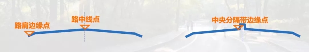 最后一個為了讓超高計算更加清晰,還需要明確橫斷面上的幾個代表點,以道路左轉(zhuǎn)為例。有左側也就是內(nèi)側路肩邊緣、內(nèi)側路面邊緣、路中、和右側也就是外側路面邊緣、路肩邊緣這五個代表點。道路右轉(zhuǎn)同理。
