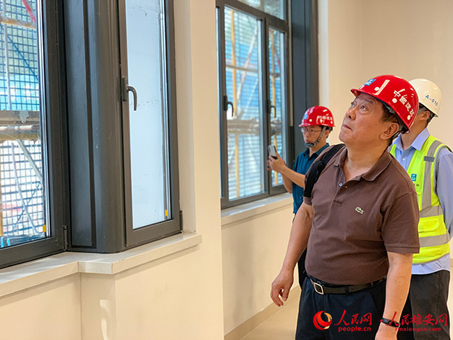 專家團隊在雄縣三中項目施工現場查看施工效果圖。張婭喃攝
