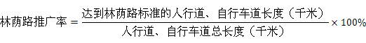 42、林蔭路推廣率(%)應(yīng)按下式計算: