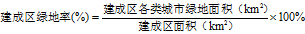 3、 建成區(qū)綠地率應(yīng)按下式計算: