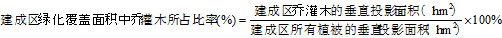 5、 建成區(qū)綠化覆蓋面積中喬、灌木所占比率應(yīng)按下式計算: