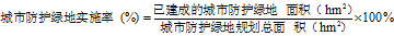13、 城市防護綠地實施率應(yīng)按下式計算: