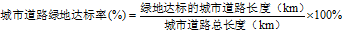 15、 城市道路綠地達標率應(yīng)按下式計算: