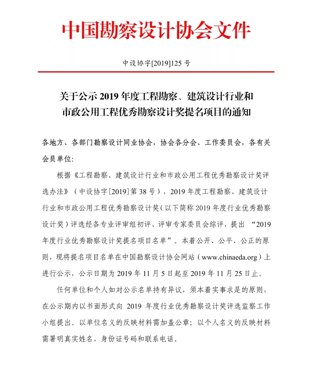 11月5日,中國勘察設計協會官網公示2019年度工程勘察、建筑設計行業和市政公用工程優秀勘察設計獎提名項目,共計1682項。