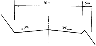 3.2.4 公路橫坡和曲線超高公路斷面一般設(shè)計成弧拱形,中間高、兩邊低,橫坡有利于排水,其坡度一般為1%~3%。彎道應(yīng)按規(guī)定設(shè)置彎道外側(cè)超髙、內(nèi)側(cè)加寬,超高橫坡坡度一般取3%~6%,加寬值一般取3~8m。