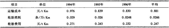 | 表 3 歷年電動輪汽車運輸成本和輪胎消耗 |