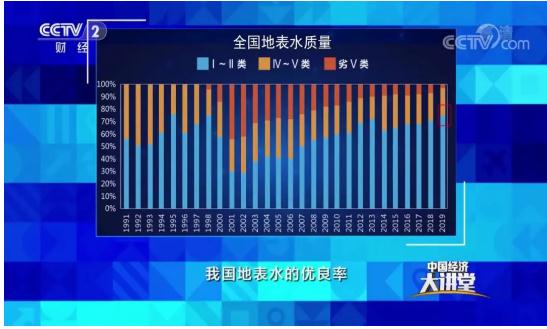我們先來看看全國的地表水的環境質量。2019年我國地表水的優良率已經達到了74.9%,這個數字比上一年提高了3.9%。