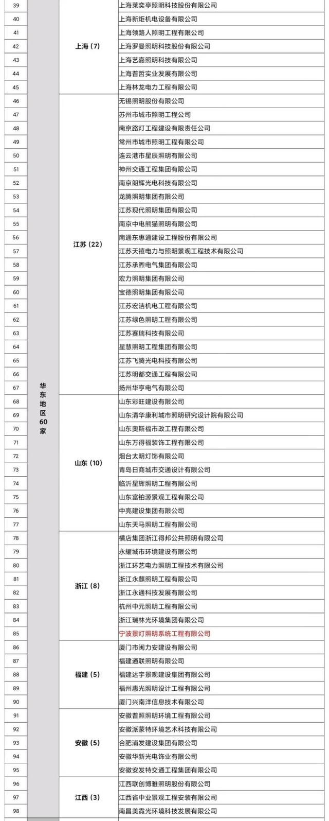 截止目前,全國擁有照明雙甲資質(zhì)的企業(yè)達(dá)到166家,分布在我國七大區(qū)域,其中華南38家,華東60家,華北18家,華中21家,西北8家,西南17家,東北4家。