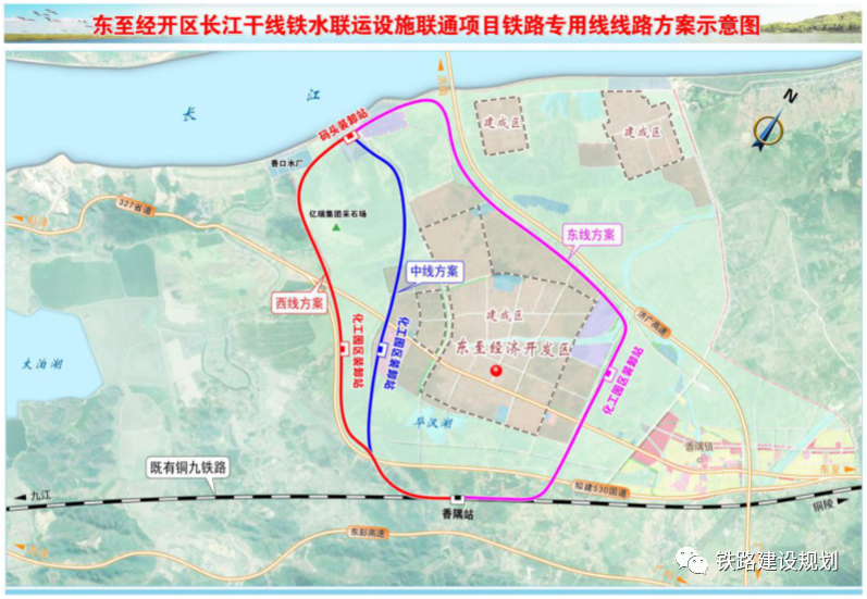 東至經(jīng)開區(qū)鐵水聯(lián)運(yùn)設(shè)施聯(lián)通項(xiàng)目(鐵路專用線),位于安徽省池州市東至縣經(jīng)濟(jì)開發(fā)區(qū),接軌既有銅九鐵路香隅站,并設(shè)置7.85km鐵路專用線連通長江碼頭以實(shí)現(xiàn)鐵水聯(lián)運(yùn)的運(yùn)輸方式。工程投資約8.7億元。全線設(shè)車站3座,其中接軌站1座、裝卸站2座(化工園區(qū)裝卸站及碼頭裝卸站),正線新建大橋1座/118.9m,新建中橋1座/59.0m。