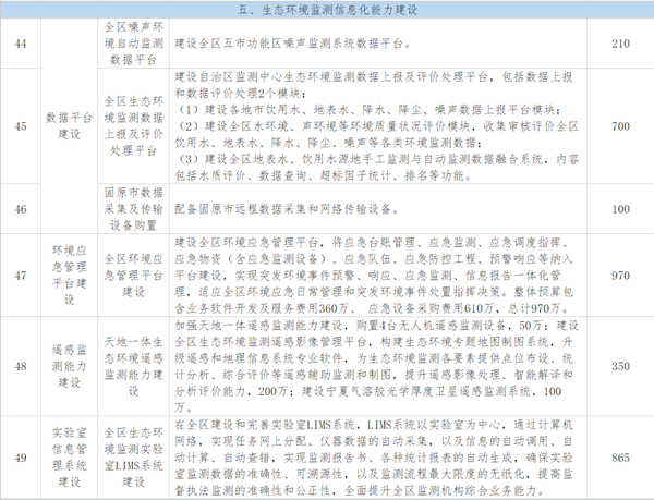 寧夏回族自治區生態環境廳印發《寧夏回族自治區生態環境監測“十四五”規劃》,劃定60項重大工程,預算投資82812萬元。詳情如下: