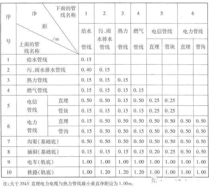 管道有交叉時(shí)注意要滿(mǎn)足最小垂直凈距: