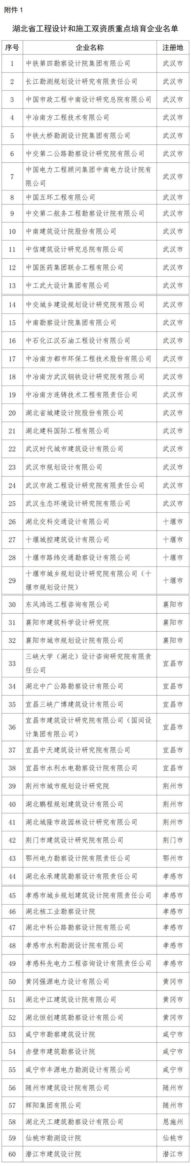 根據(jù)《關(guān)于加強(qiáng)工程勘察設(shè)計(jì)重點(diǎn)企業(yè)培育的通知》及有關(guān)文件規(guī)定,省住建廳對(duì)擬列入重點(diǎn)培育企業(yè)名單的企業(yè)進(jìn)行了公示,公示期內(nèi),無任何單位和個(gè)人提出異議。現(xiàn)將中鐵第四勘察設(shè)計(jì)院集團(tuán)有限公司、長(zhǎng)江勘測(cè)規(guī)劃設(shè)計(jì)研究有限公司、中國(guó)市政工程中南設(shè)計(jì)研究總院有限公司等60家重點(diǎn)培育企業(yè)予以公布(附件1)。