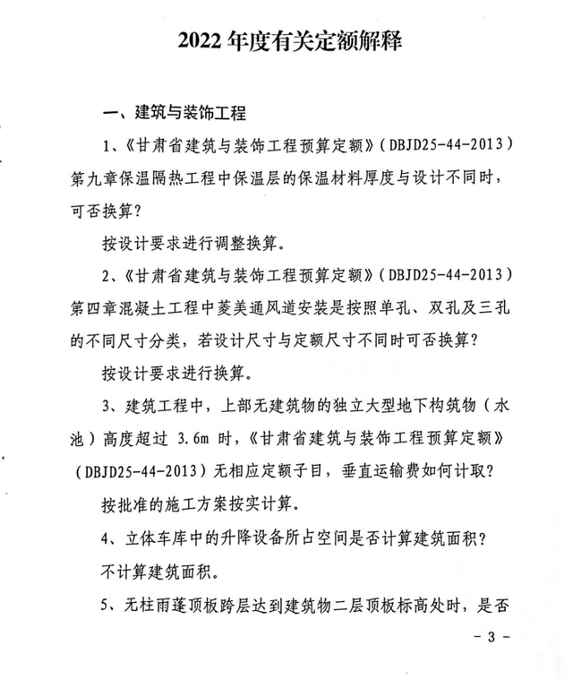 工程造價(jià)定額變動(dòng)!甘肅住建廳出臺(tái)《2022年度有關(guān)定額解釋》