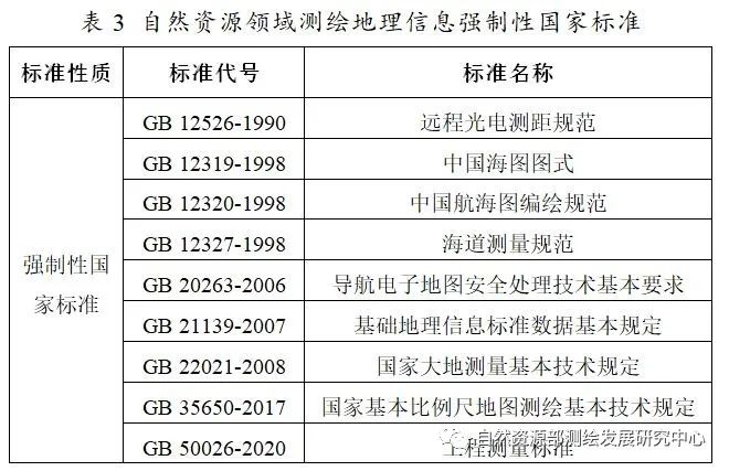 自然資源部組建后,測(cè)繪地理信息標(biāo)準(zhǔn)成為自然資源標(biāo)準(zhǔn)體系的重要組成部分。截至2021年底,自然資源領(lǐng)域測(cè)繪地理信息相關(guān)標(biāo)準(zhǔn)中僅有9項(xiàng)強(qiáng)制性國(guó)家標(biāo)準(zhǔn)。