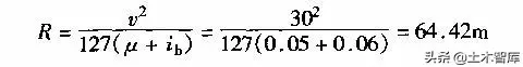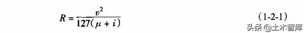 由第一章汽車(chē)行駛理論,根據(jù)汽車(chē)行駛在曲線(xiàn)上力的平衡式(1-1-31)可知圓曲線(xiàn)半徑計(jì)算公式為