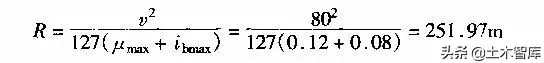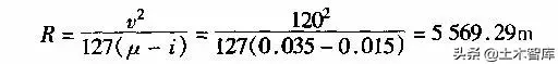 根據(jù)式(1-2-5)不設(shè)超高的最小半徑公式: