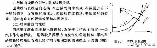 汽車(chē)從直線(xiàn)進(jìn)入圓曲線(xiàn),或從大半徑圓曲線(xiàn)駛?cè)胄“霃綀A曲線(xiàn)時(shí),插入緩和曲線(xiàn),可使汽車(chē)前輪轉(zhuǎn)向角逐漸從0°至a轉(zhuǎn)向,從而有利于駕駛員操縱方向盤(pán).保證安全行駛。