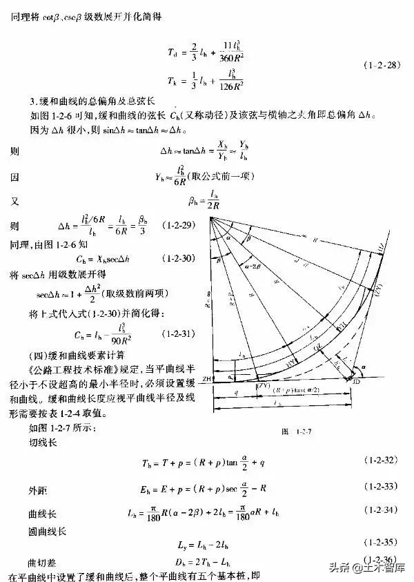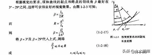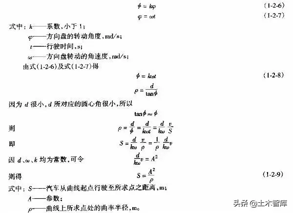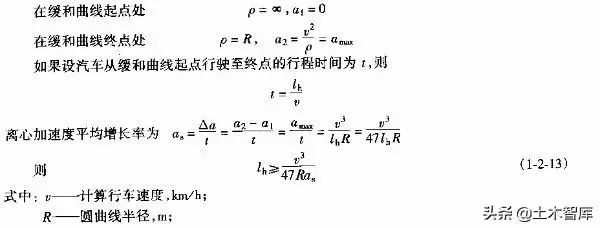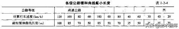 上式表明.最短的緩和曲線(xiàn)與半徑的大小無(wú)關(guān),即使平曲線(xiàn)半徑較大,當(dāng)汽車(chē)高速行駛時(shí),也應(yīng)有個(gè)轉(zhuǎn)變過(guò)程,因而式(1-2-15)是高等級(jí)公路設(shè)置緩和曲線(xiàn)的校核式。