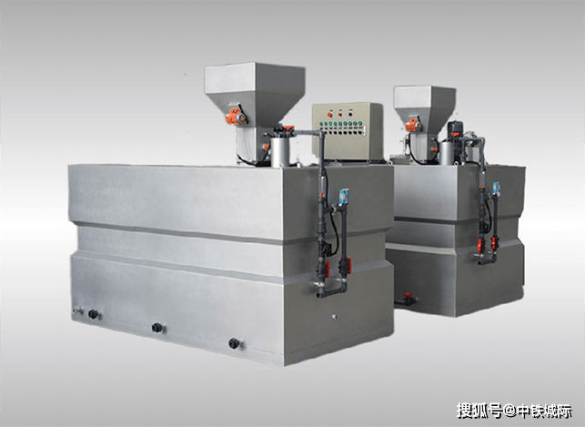 裝置工作原理:干粉絮凝劑加入干粉料斗后,按設定的配比濃度,由螺桿給料機定量輸入溶解箱內(nèi),與定量的清水混合,經(jīng)過攪拌器攪拌、熟化后,由計量泵將混合液外輸至加藥點 。