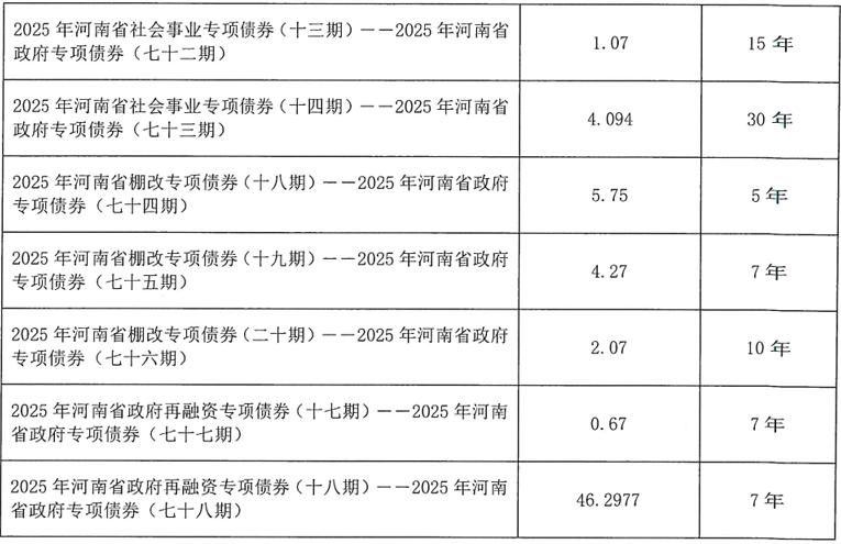 2025年河南省政府專項債券(七十至七十六期)擬發行金額79.052億元,主要用于74個城鄉發展、社會事業、棚戶區改造項目。